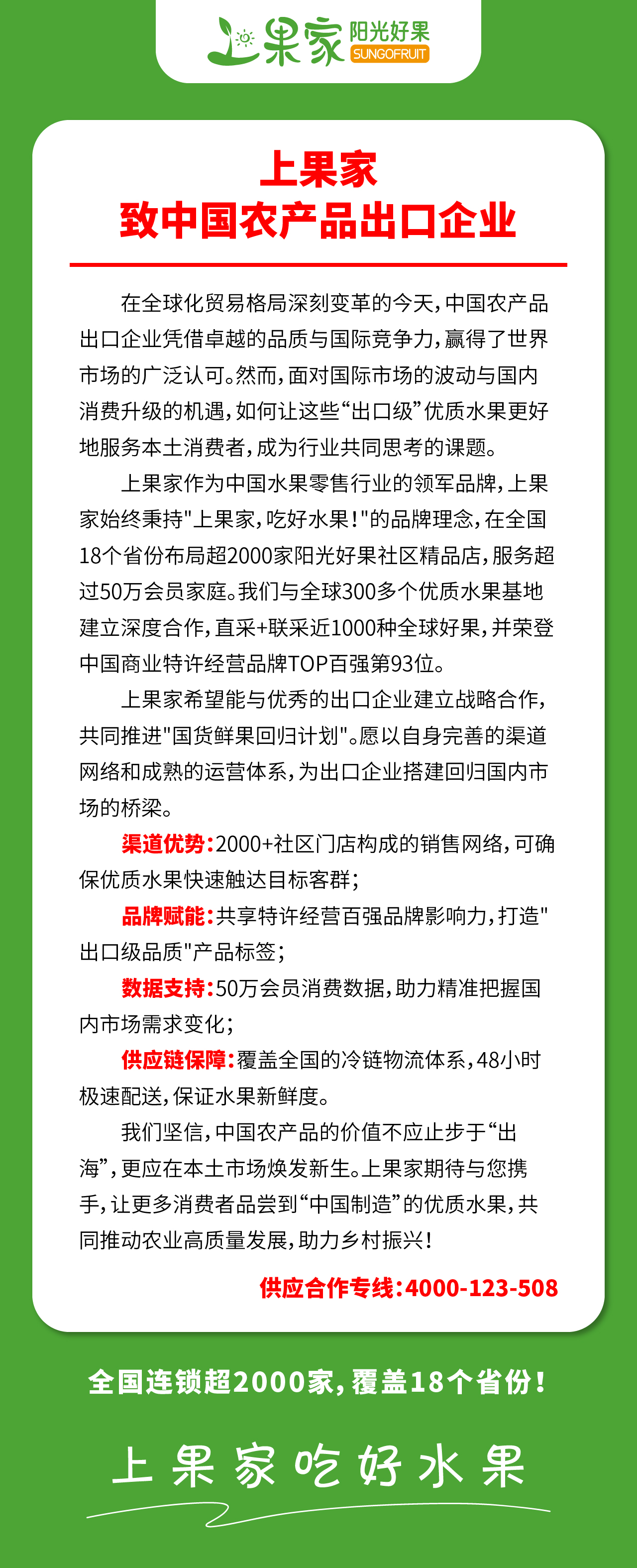 上果家 致中國農產品出口企業